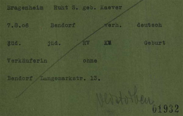 (geb. Bragenheim) * 09. 05. 1897 Güstrow erwähnt.