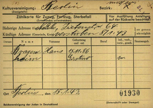 Mann ist am 30.01. 1943 in Theresienstadt gestorben.