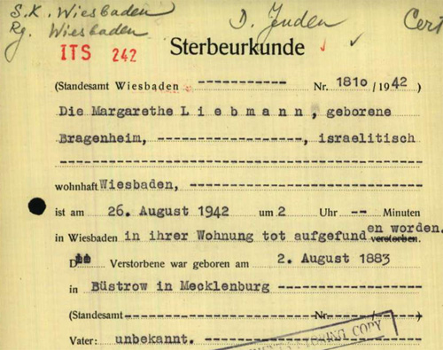 Suizid nicht, wie bei Margarete Liebmann, in Zusammenhang mit einer Deportation